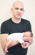 - Ben doğuma girmiş bir baba olarak (biraz havamı atayım) doktorun bebeği eşimin kucağına ilk verdiği an çok heyecanlandım. Kordonuyla hâlâ anneye bağlı bir bebek düşünün, üzerinde hâlâ sıvılar vardı. Müthiş bir andı! Bir de göbek bağını bana kestirmeye kalktılar, "Yok ben yapamam," dedim ama nafile sonunda göbek bağını bana kestirdiler. İlk kucağıma aldığımda da biraz tedirgindim, ama çok mutlu oldum. Doğum fotoğraflarımızı çeken Şengül Pallı bebeğimiz Erem'i koluma yatırıp bu pozu vermemi istedi. O resim çekilirken biraz tedirginlik yaşadım tabii. Ama Erem yerinden memnun, tatlı tatlı uyuyordu.