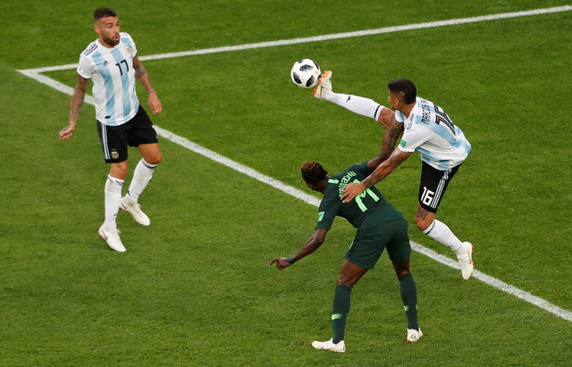 45. dakika Marcos Rojo ile Kelechi Iheanacho'nun mücadelesinde Arjantinli Rojo, ceza sahası içinde ayağını Nijeryalı Iheanacho'nun başının üstüne kadar kaldırdı.