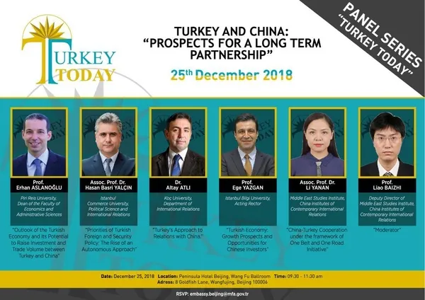 "Türkiye ve Çin: Uzun Vadeli İşbirliği Olasılıkları" başlığı altında; 25 Aralık'ta Çin Çağdaş Uluslararası İlişkiler Enstitüsü CICIR işbirliğiyle Pekin Peninsula Otel'de ve 28 Aralık'ta Küresel Araştırmalar Merkezi işbirliğiyle Şangay Üniversitesi'nde düzenlenecek olan panellerde, alanında uzman Türk ve Çinli akademisyen yazarlar Türkiye gündemine ve Türkiye - Çin ilişkilerinin stratejik önemine değinecekler.