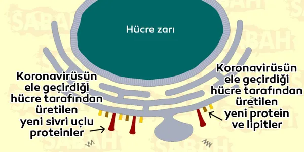 Enfeksiyon ilerledikçe, hücre mekanizması koronavirüsün daha fazla kopyasını oluşturacak yeni sivri uçlu proteinleri ve diğer türdeki proteinleri üretmeye başlar. Bağşıklık sistemi virüs tarafından kandırıldığı için bu üretim devam eder.