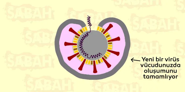 Virüsün yeni kopyaları toplanır ve hücrenin dış kenarlarına doğru hareket eder.