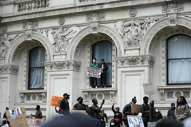 İngiltere'nin başkenti Londra'da binlerce kişi bir araya gelerek, Floyd cinayetini protesto etti. Geçtiğimiz günlerde başkentte bulunan Trafalgar Meydanı, Hyde Park ve Parlamento Binası önünde yapılan eylemler bugün ABD Büyükelçiliği önünde gerçekleşti. Büyükelçilik önündeki protestolara diğer günlere kıyasla daha fazla kişinin katıldığı görüldü.