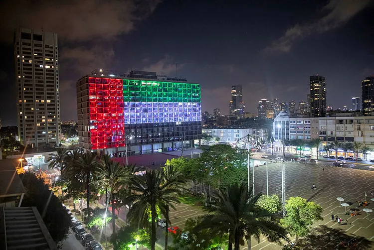TEL AVİV BELEDİYE BİNASI BAE BAYRAĞIYLA AYDINLATILDI