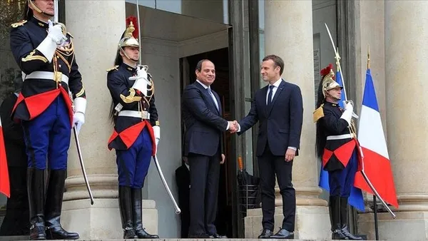 Fransa Cumhurbaşkanı Macron Elysee Sarayı'nda 7 Aralık'ta mevkidaşı Sisi'yi kırmızı halıyla karşılamıştı.
