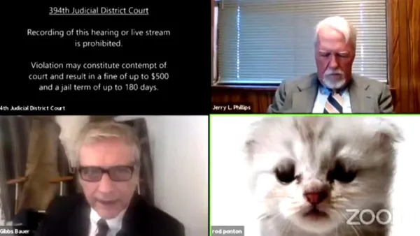 ABD'nin Texas eyaletinde bulunan Brewster County'deki bir mahkemenin Zoom uygulaması üzerinden düzenlenen çevrimiçi duruşmasına katılan hakim Roy Ferguson, karşısında iki avukat ve 'bir kedi' buldu. Avukatlardan Rod Ponton yanlışlıkla filtre kullandığı için mavi gözlü bir kedi olarak göründü. Sözkonusu ilginç görüntü üzerine hakim, avukata "Bay Ponton, sanırım video ayarlarında filtreleri açmışsınız" uyarısı yaptı.