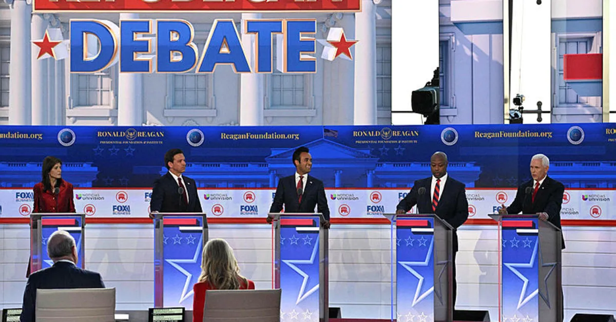 Katılımcıların Cumhuriyetçi Ulusal Komitesi (RNC) tarafından belirlendiği canlı yayın tartışmasına eski ABD Başkan Yardımcısı Mike Pence, Florida Valisi Ron DeSantis, eski Güney Carolina Valisi ve ABD'nin 29. Birleşmiş Milletler Daimi Temsilcisi Nikki Haley, eski New Jersey Valisi Chris Christie, Kuzey Dakota Valisi Dough Burgum, Güney Carolina Senatörü Tim Scott ve genç multimilyoner Vivek Ramaswamy katıldı.
