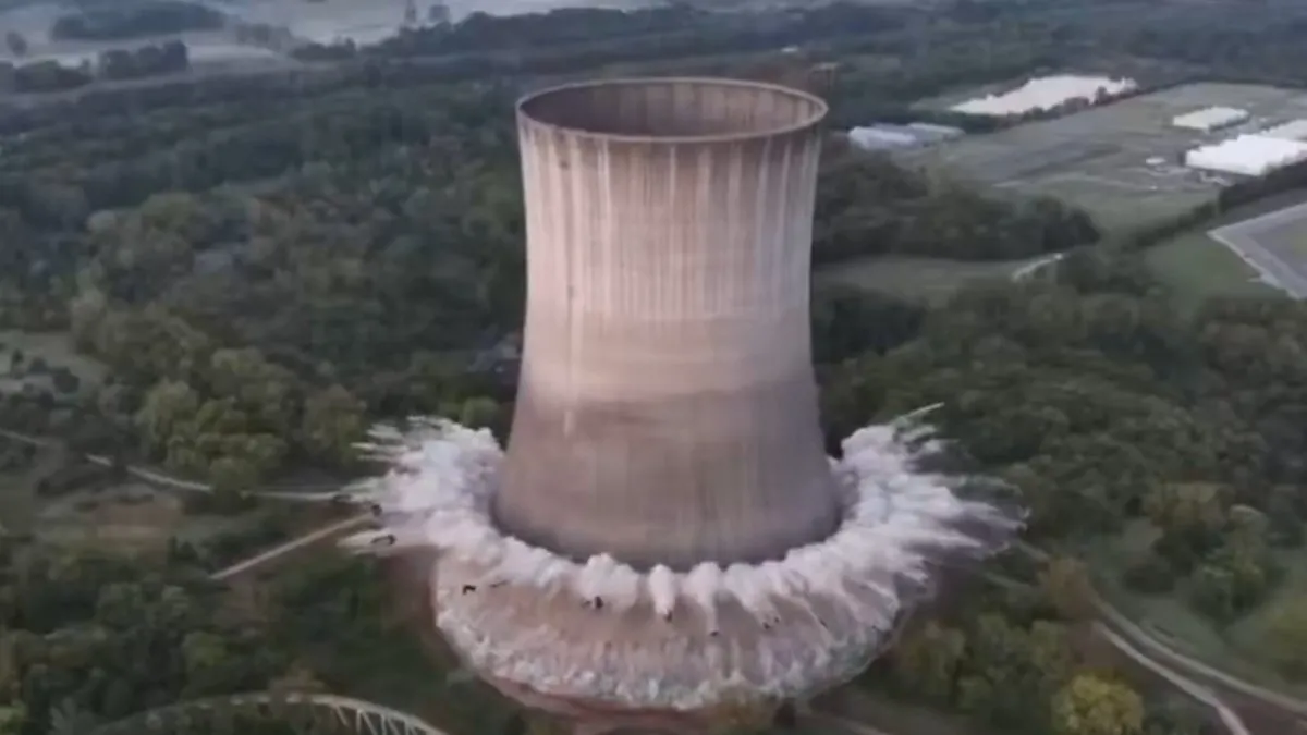 ABD'nin Tennessee eyaletindeki dev soğutma kulesi 400 kilogram patlayıcı kullanılarak 10 saniyede yerle bir oldu.