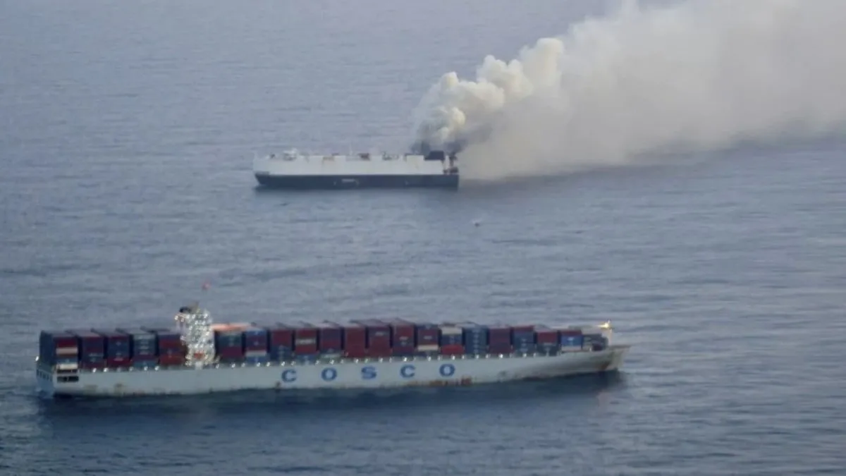 ABD’de bir kargo gemisini alevler sardı. Yangının söndürülememesi üzerine gemi, 3 bin araçla birlikte denize gömüldü.
