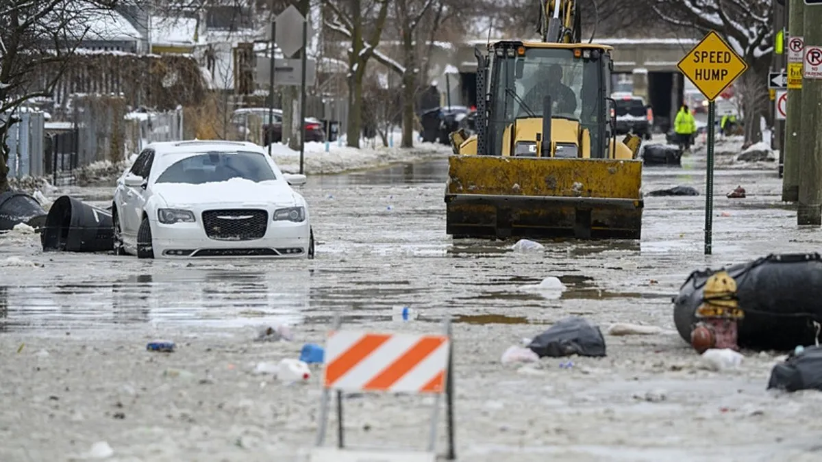 ABD’nin Detroit kentinde bir mahallede su borusu patladı. Bölge sular altında kalırken, park halindeki araçlar hava sıcaklığının da düşmesiyle donan suyun içinde kaldı.