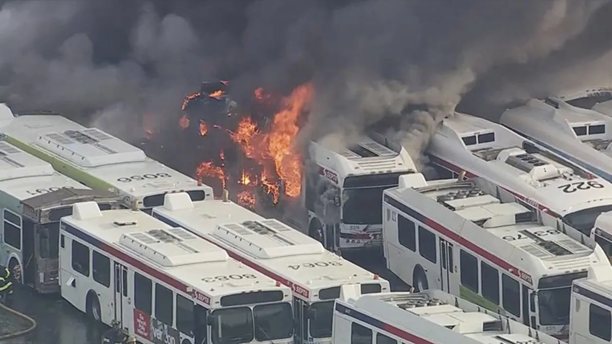 ABD'nin Pensilvanya eyaletindeki Philadelphia kentinde Ulaştırma Bakanlığı'na ait bir garajda otobüslerin alev almasıyla yangın çıktı.