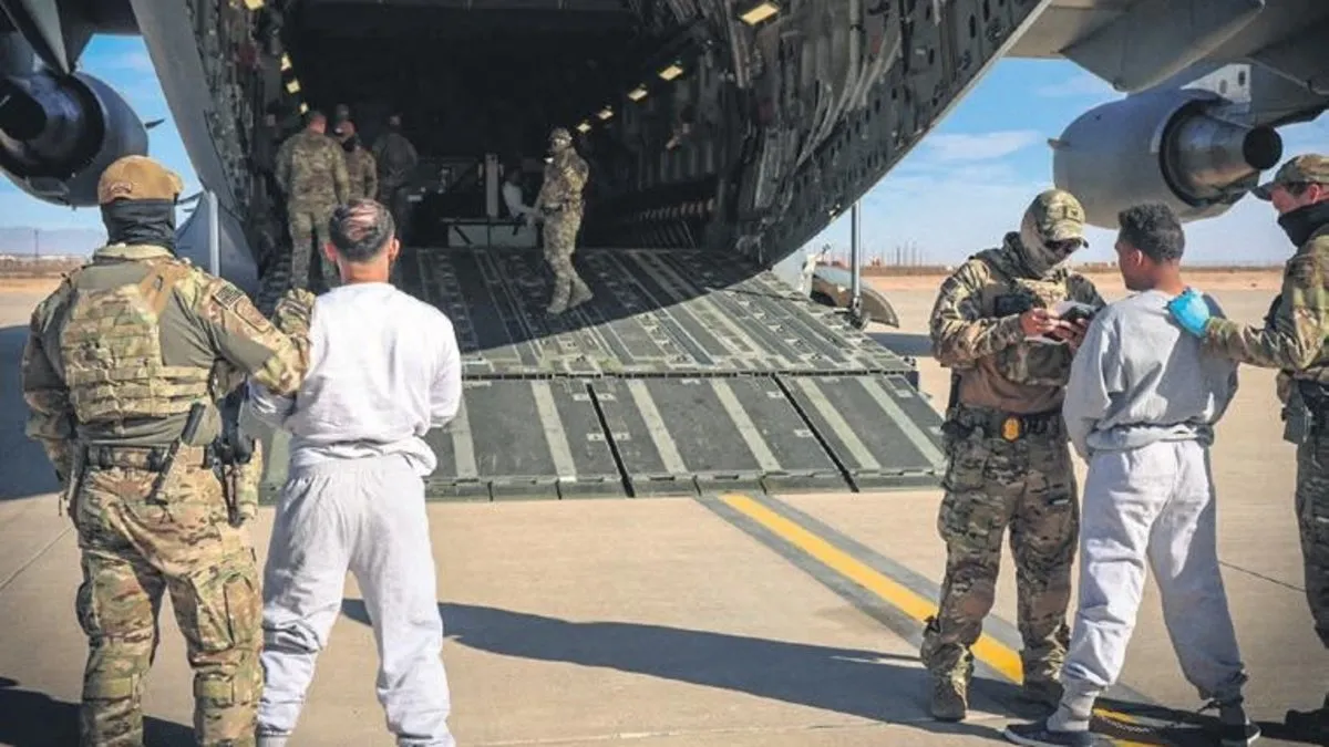 ABD Savunma Bakanlığı (Pentagon), düzensiz göçmenlerin Guantanamo Körfezi Deniz Üssü'ne taşındığı videoyu paylaştı. Yaklaşık 1.5 dakikalık videoda el, ayak ve bellerinden zincirlerle bağlı düzensiz göçmenlerin uçaktan her biri ik i ABD askeri tarafından kollarından tutularak üsse taşınması dikkati çekiyor.