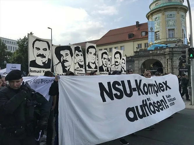 Etkinlikte, 11 yıl önce Dresden mahkeme salonunda, yabancı düşmanı bir saldırgan tarafından bıçaklanarak öldürülen Merve al-Sharbini ile Hanau kentindeki ırkçı terör saldırısında yaşamını yitirenler ve Nasyonel Sosyalist Yeraltı (NSU) terör örgütünün katlettiği kişiler de anıldı.