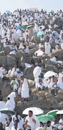 Milyonlarca hacı adayı bugün yaklaşık 14 kilometrelik yeşillendirilmiş ve sarı tabelalarla çevrilmiş çadırlı bölgeler ile Cebeli Rahme’de (Arafat Dağı) kıbleye dönüp vakfe duracak