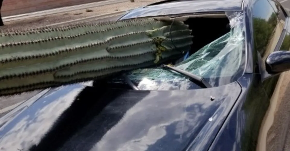 ABD'nin Arizona eyaletinde bir araç kaktüse daldı. Dev kaktüs aracın ön camından girerken sürücü olayı hafif sıyrıklarla atlattı. Polis, spor otomobil sürücüsünün yolun ters tarafından ilerlediğini ve kaktüse çarpması sonucu kazanın gerçekleştiğini açıkladı. Dev kaktüsün kırılması sonucu bir parçasının otomobilin ön camından girdiği ve sürücünün kazayı hafif sıyrıklarla atlattığı belirtildi. 39 yaşındaki sürücünün ise gözaltına alındığı aktarıldı.