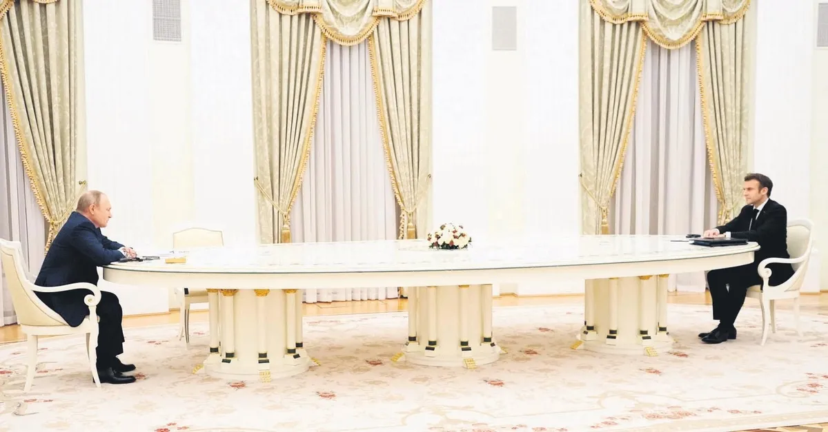 Rus lider Putin ile Fransa Cumhurbaşkanı Macron’un Ukrayna zirvesine uzun masa damga vurdu. Putin, Macron’u yanına bile yaklaştırmadı. Fransız lider, alay konusu oldu. “Putin, Avrupa’ya simgesel mesaj verdi” denildi