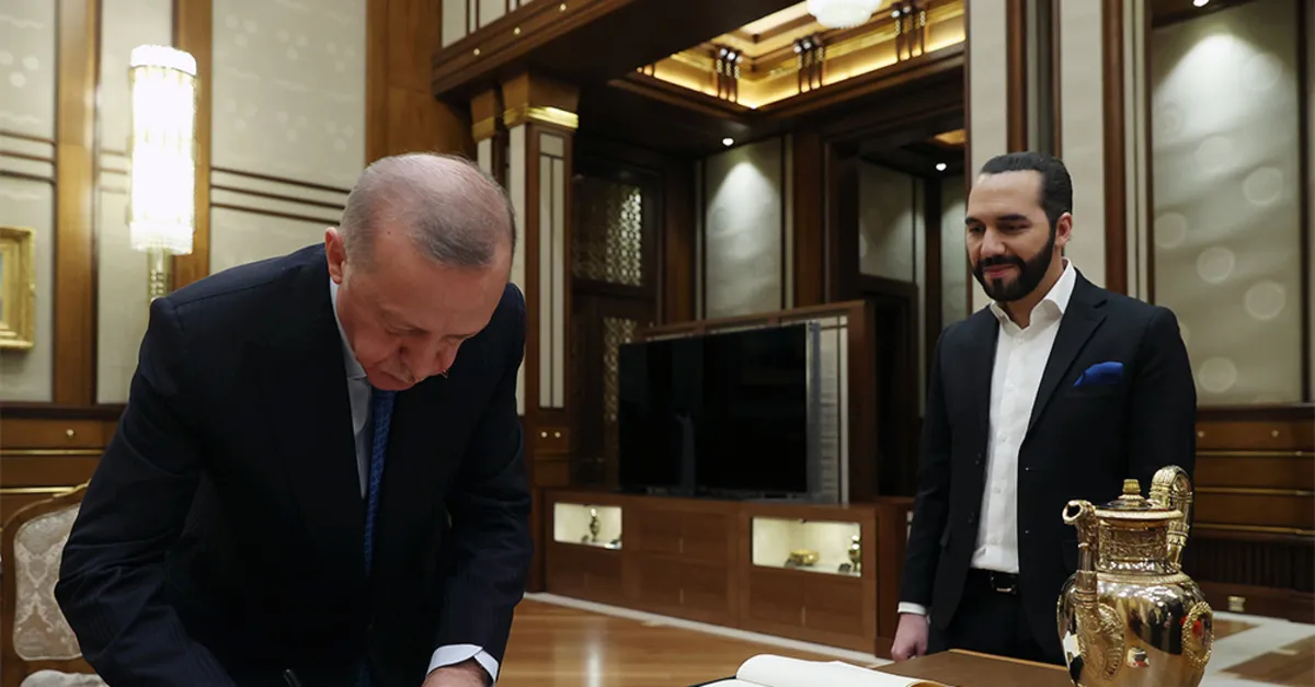 Başkan Recep Tayyip Erdoğan, El Salvador Cumhurbaşkanı Nayib Bukele’ye 'Dünya Beş'ten Büyüktür' ile kendi kitabını kitabını imzalayarak hediye etti.