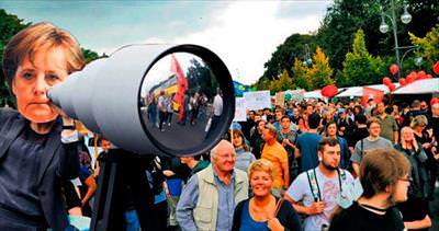 Almanya'nın başkenti Berlin'de istihbarat servislerinin dinleme ve takip etme faaliyetleri protesto edildi. Önceki gün, kent merkezindeki tarihi Brandenburg Kapısı (Brandenburger Tor) önünde "Korku yerine özgürlük" sloganıyla toplanan binlerce kişi, daha sonra Başbakanlık binasına yürüdü.