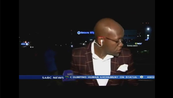 Dün (Salı) akşam Johannesburg'te canlı yayın yapmaya hazırlanan spiker neye uğradığını şaşırdı. İnternette yayınlanan videoda, Vuyo Mvoko isimli spikerin bir hastanenin önünde canlı yayına hazırlandığı sırada iki kişinin arkadan yaklaşıp cep telefonunu yokladığı görülüyor. Spikerin, "Hey yağmalanıyoruz" çığlığına rağmen hırsızlar üç cep telefonu ve bir dizüstü bilgisayarı alıp kaçtı.