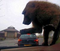 İngiltere'nin Knowsley Safari Parkı'nı ziyaret eden ailenin çektiği bir fotoğraf aslında optik bir illüzyondan ibaret. Doğru zamanda doğru yerde çekilen bu ilginç fotoğrafta babun aslında otomobilin kaputuna çıkıp elini uzatmış. Ancak optik illüzyon sayesinde babun öndeki otomobili eziyor gibi görünüyor. 34 yaşındaki Chez Owen, ailesiyle parkta geçirdiği günün sonrası fotoğraflara bakarken gözlerine inanamamış. Owen, "Aslında babunun otomobilin kaputuna çıkmış olmasını fotoğraflamak istiyordum. Ama fotoğrafa ilk bakınca sanki babun öndeki otomobili ezdiğini sanıyorsunuz" dedi.