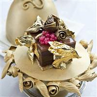 Tatlının içinde şampanya havyar, altın ve iki karatlık bir elmas da bulunuyor. Tatlının pudingi de 4 farklı özel Belçika çikolatasından yapılmış.