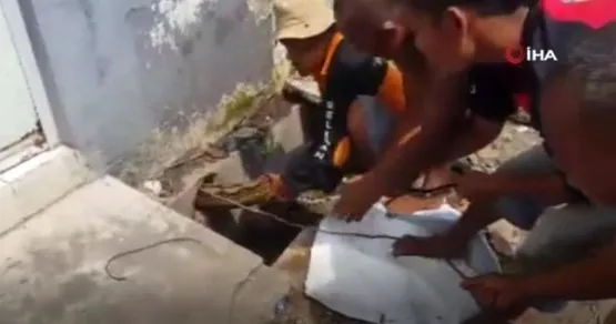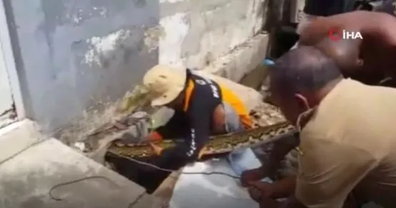 Endonezya'da evin havalandırma borusunda piton yakalandı
