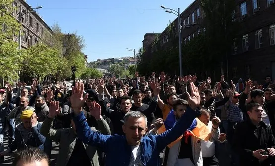 Ülkenin yeni başbakanı olması beklenen eski Cumhurbaşkanı Sarkisyan'a karşı olan binlerce kişi, başkent Erivan'da ana caddeleri trafiğe kapattı.