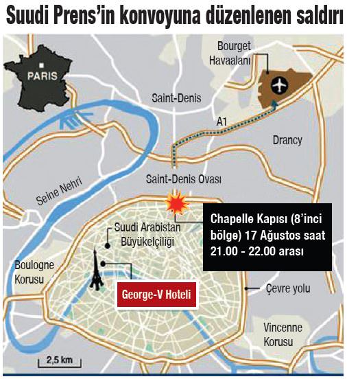 Fransa'nın başkenti Paris'in kuzeyinde önceki gece konvoyu saldırıya uğrayan Suudi prensin kimliği ortaya çıktı. Fransız ve Arap medyasına göre, hedef alınan konvoy, 2005'te hayatını kaybeden Kral Fahd'ın oğlu Prens Abdülaziz'e aitti. Paris'te alışveriş yaptıktan sonra İbiza adasına gitmekte olan Prens, saldırıya rağmen tatil planını bozmadı. Paris'in merkezinde ve Eyfel Kulesi'ne yakın mesafede yer alan Four Seasons George-V Oteli'nde konaklayan Prens Abdülaziz'in, lüks alışveriş mekânlarına yakın olmasından dolayı burayı tercih ettiği bildirildi. Prens Abdülaziz'in diplomatik zırhı sayesinde yüklü miktarlarda nakitle Paris'e gidip geldiği kaydedilirken, saldırganların gasp ettiği 250 bin euroluk miktarın, Prens'in bir haftalık harcamasına denk geldiği iddia edildi. Prens'in konvoyunun saldırıya uğramasının ardından Fransız yetkililerin Suudi Arabistan Kralı Abdullah'ı arayarak özür dilediği ve olayın en kısa zamanda aydınlatılacağı sözü verdiği açıklandı. Paris'teki Suudi Arabistan Büyükelçiliği binasından çıktıktan sonra Bourget Havaalanı'na doğru hareket eden konvoyun önü yerel saatle 21.00 sularında silahlı saldırganlar tarafından kesilmişti. Konvoydaki bir minibüse el koyan saldırganlar 250 bin euro tutarında nakit para ve evrakı çaldıktan sonra kayıplara karışmıştı. Fransız polisi, çalınan evrakın diplomatik özelliği olmadığını belirtti.