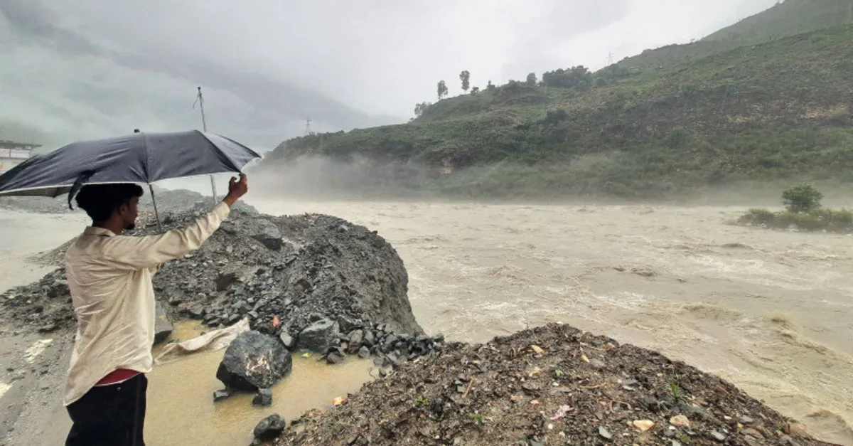Himaçal Pradeş'te meydana gelen ani seller nedeniyle bir köprü yıkıldı, kulübeler sel sularına kapılıp sürüklendi.