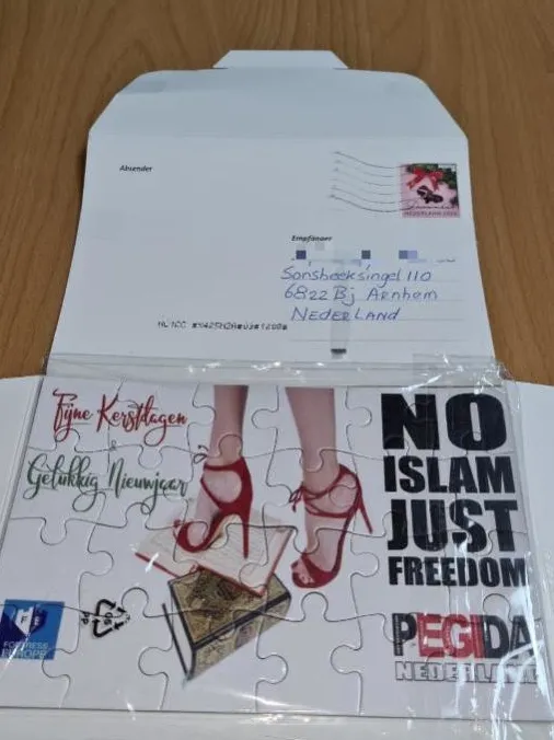 İslam düşmanı PEGIDA hareketi Hollanda’daki yaklaşık 100 camiye Kur’an- Kerim’i ayaklar altına alındığını gösteren provakatif amaçlı yılbaşı tebrik kartı gönderdi.