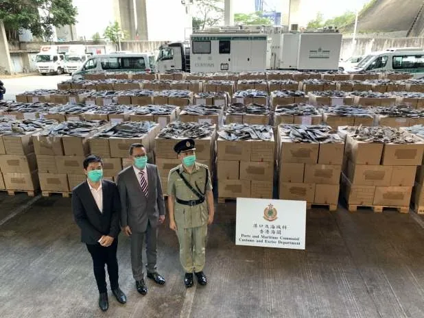 Çin'in Hong Kong Özel İdari Bölgesi’ne Ekvador’dan gönderilen 2 konteynerde 26 ton kurutulmuş köpek balığı yüzgeci ele geçirildi. Yüzgeçleri toplamak için 38 bin 500 köpek balığının katledildiği tahmin ediliyor. Hong Kong yasalarına göre, nesli tükenme tehlikesiyle karşı karşıya hayvan ve bitkilerin bir lisans belgesi olmadan ithalatı, ihracatı ve sahiplenilmesine yönelik maksimum 10 yıla kadar hapis cezası ve 10 milyon Hong Kong Doları (9 milyon 283 bin Türk Lirası) para cezası uygulanıyor.