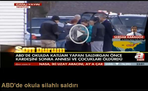 ABD'nin Connecticut eyaletindeki Newtown kasabasında dün bir ilkokulda meydana gelen saldırıda 20'si çocuk 26 kişinin öldürüldüğü bildirildi. 5 ila 10 yaşındaki çocukların gittiği Sandy Hook İlkokulu'nda sabah 9.30'dan sonra başlayan saldırıyı Adam Lanza adındaki 20 yaşlarında bir kişinin gerçekleştirdiği belirtildi..
