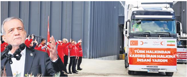 Öte yandan Türk Kızılay Genel Başkanı Fatma Meriç Yılmaz, İran Kızılayı'nın talebi üzerine barınma, hijyen malzemesi ve travma kitlerinden oluşan 48 ton malzemenin yer aldığı 4 TIR'ın bölgeye gönderilmek üzere yola çıktığını bildirdi. Türk Kızılay'ın İran'a yönelik saldırılardan etkilenen sivillerin insani ihtiyaçlarını karşılamak üzere hazırladığı, içerisinde barınma, hijyen ve travma kitinden oluşan 48 ton yardım malzemesinin bulunduğu 4 TIR'ın uğurlanması için Ankara Kızılay Lojistik Merkezi'nde tören düzenlendi. İran Kızılayı, ABD-İsrail'in 28 Şubat'ta başlattığı ve 8 Nisan'da son bulan saldırılarında ülke genelinde 125 bin 630 sivil birimin hasar gördüğünü bildirdi.