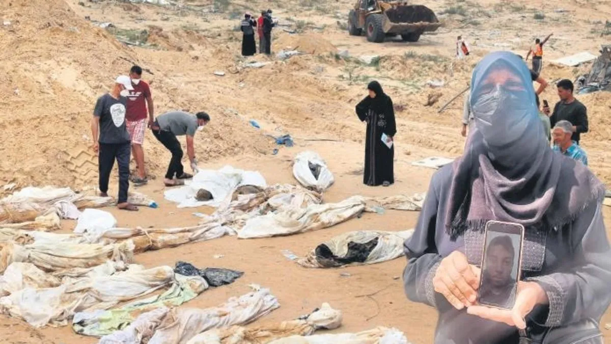 İsrail'in çekildiği Nasır Hastanesi'nde bulunan toplu mezarlardan çıkarılan cansız bedenlerin kimlik tespitleri sürüyor. 4 günde 392 cesedin çıkarıldığı hastane bahçesinde Filistinli anneler çocuklarını arıyor. Middle East Eye sitesine göre bu annelerden biri de Amal al-Baiouk (solda).