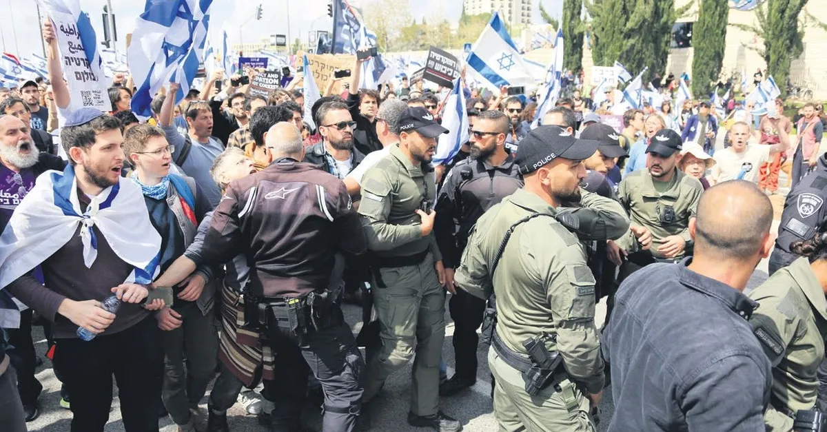 İsrail Başbakanı Binyamin Netanyahu, yargının yetkilerini kısıtlamayı hedefleyen düzenlemeye karşı ülke genelinde gerçekleştirilen protestoların yoğunlaşması ve genel greve gidilmesi üzerine geri adım attı. Son 3 yılda 5 kez seçime gidilen İsrail'de tansiyon son aylarda yükseldi. Netanyahu liderliğindeki altılı koalisyon hükümeti, yargının yetkilerini kısıtlayan ve iktidarın yargı atamalarında söz sahibi olmasını öngören düzenlemeyi hayata geçirmek için çalışma başlattı. Ancak Tel Aviv başta olmak üzere birçok kentte 13 hafta boyunca protestolar düzenledi. Netanyahu'nun, düzenlemenin durdurulması çağrısı yapan Savunma Bakanı Yoav Gallant'ı önceki gün görevden alması olayların daha da kontrolden çıkmasına neden oldu. Bu karar koalisyonda çatlaklara yol açtı. Ulusal Güvenlik Bakanı Itamar Ben- Gvir'in, tartışmalı yargı düzenlemesinin askıya alınması halinde hükümetten çekileceği iddia edildi. Gerginlik her geçen saat tırmanırken, Netanyahu'dan beklenen açıklama dün akşam geldi. Netanyahu, "gerçek bir diyaloğa fırsat vermek amacıyla meclis tatilinden sonrasına kadar tartışmalı yasa tasarılarına mola verme kararı aldığını" söyledi. Haftalardır ülke genelinde artan protestoların hedefinde olan Netanyahu, "Kabul edemeyeceğim bir şey var. Şiddet yanlısı bir azınlık, İsrail'i parçalamaya çalışıyor, bizi iç savaşa çekmek istiyor ve askerlik hizmetini reddetmek için çağrıda bulunuyor" dedi.
