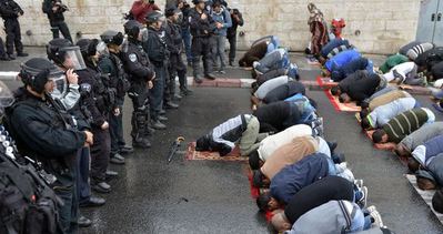 İsrail polisi son zamanlarda hemen hemen her cuma günü Mescid-i Aksa'da namaz kılmak isteyen Filstinli erkeklere yaş sınırlaması uyguluyordu.