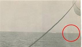 Titanik'ten 705 yolcuyu kurtaran Carpathia gemisindeki bir yolcunun çektiği karede, arkada kalan buzdağı net olarak görünüyor.