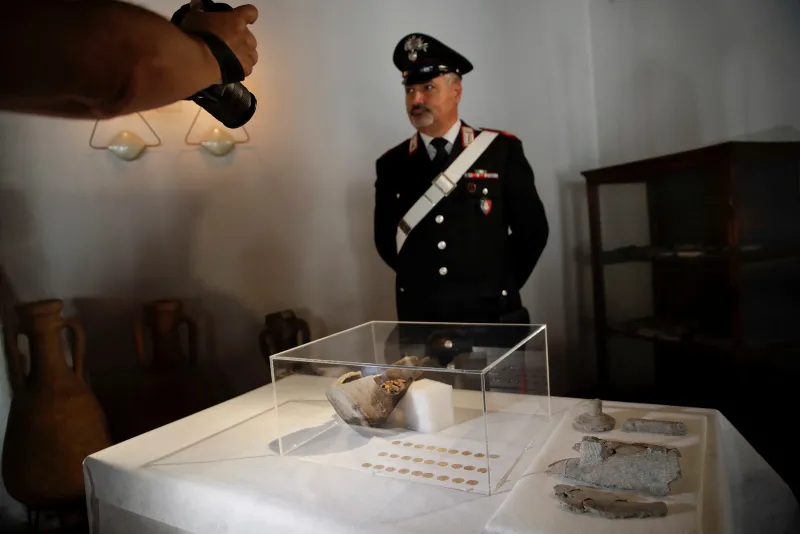 İtalya Kültür Bakanlığı (MiBAC) tarafından yapılan açıklamaya göre taş bir bakraç içinde çok iyi korunmuş halde bulunan 300 Roma İmparatorluğu sikkesi bulundu. Arkeologlar sikkelerin 5'inci yüzyıla ait olduğunu açıkladı.