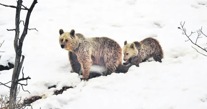 Kış uykusuna yatmayan ayı ailesi