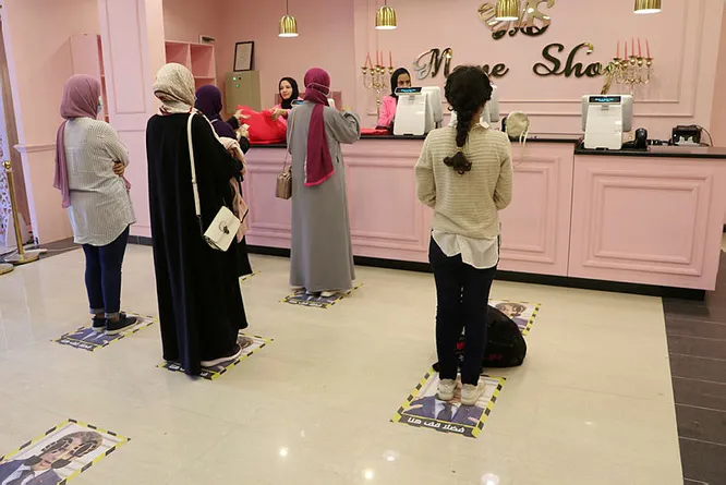 Libya'da bir giyim mağazası, Fransa Cumhurbaşkanı Emmanuel Macron'un İslam karşıtı tutumu ve Hazreti Muhammed'i hedef alan karikatürleri savunmasına tepki olarak, yerdeki sosyal mesafe etiketlerinde Macron'un fotoğrafını kullandı.