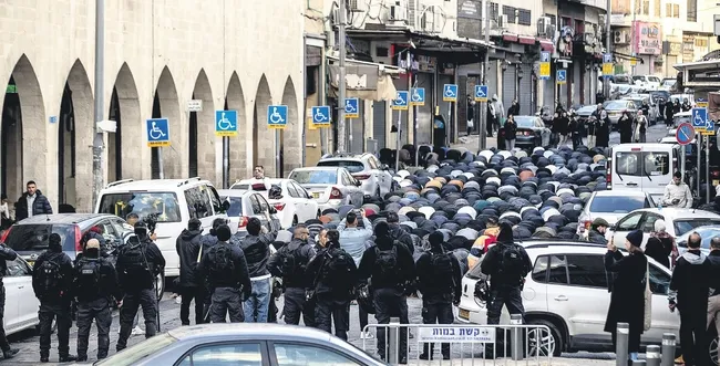 Mescid-i Aksa'nın ibadete kapatılması üzerine binlerce Filistinli, bayram namazını kılabilmek için Eski Şehir surlarının önünde ve Aksa'ya en yakın noktalarda toplandı. "Aksa'yı yalnız bırakmama" iradesini gösteren kalabalık, tekbirler getirerek ibadetlerini sokaklarda yerine getirmeye çalıştı. Ancak İsrail polisi, Doğu Kudüs'ün Sultan Süleyman ve Selahaddin caddeleri başta olmak üzere birçok noktada toplanan sivillere sert müdahalede bulundu. Filistinli gençlerin ve ailelerin üzerine ses bombaları atan İsrail güçleri, ibadet etmek isteyen kalabalığı dağıtmak için ses bombası ve cop kullandı.
