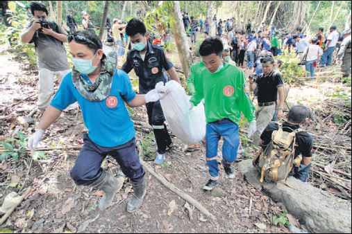 Tayland'ın güneyindeki ormanlık alanda önceki gün bulunan 32 cesedin ardından kazılar dün de devam etti. Malezya sınırı yakınlarındaki Sadao bölgesinde dün 6 cesede daha ulaşıldı. Şimdiye kadar cesedi bulunanların, iş bulmak için Myanmar ve Bangladeş'ten Tayland'a geçen Müslümanlar olduğu biliniyor. Göçmenlerin, kaçakçılar tarafından bu bölgede yarı yolda bırakıldıktan sonra aç kaldıkları için öldüğü tahmin ediliyor.