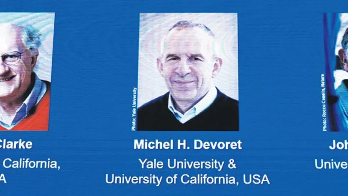 İsveç Kraliyet Bilimler Akademisi'nde düzenlenen basın toplantısında, 2025 Nobel Fizik Ödülü'nün sahipleri açıklandı. 2025 Nobel Fizik Ödülü, "elektrik devresinde makroskopik kuantum mekanik tünelleme ve enerji kuantizasyonunun keşfine" ilişkin çalışmalarından dolayı İngiliz John Clarke, Fransız Michel Devoret ve ABD'li John Martinis'e verildi.