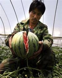 Çin'in doğusundaki bostanlarda, aşırı derecede kimyasal verilen karpuzlar "infilak etti".