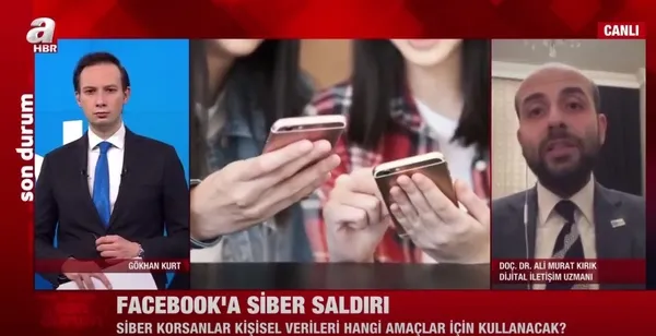 Son Dakika haberi...Facebook kullanıcısı 533 milyon kişinin telefon numaraları ile birlikte kişisel verileri bilgisayar korsanları tarafından çalındığı iddia edildi. Doç. Dr. Ali Murat Kınık, A Haber'e konuk olarak konuyla ilgili önemli uyarılarda bulundu.