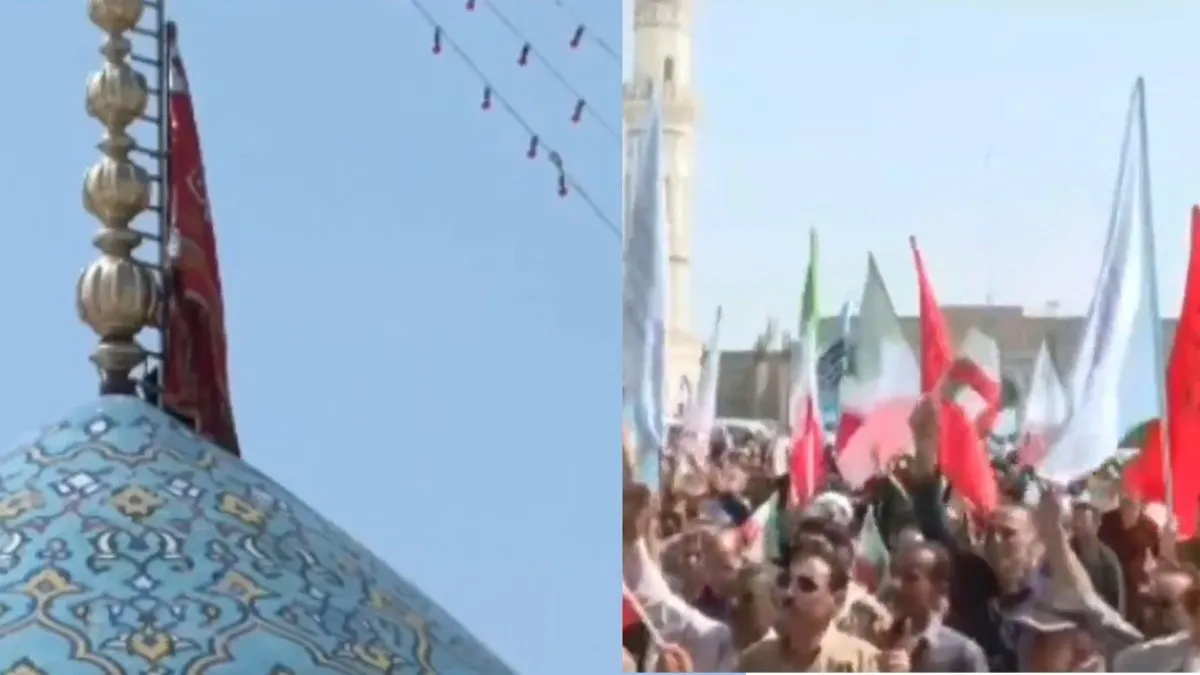İsrail'in İran'a yönelik saldırılarının ardından Şii'lerin kutsal mekanı Kum kentindeki Cemkeran Camii'ne 'intikam' sembolü kırmızı bayrak çekildi.