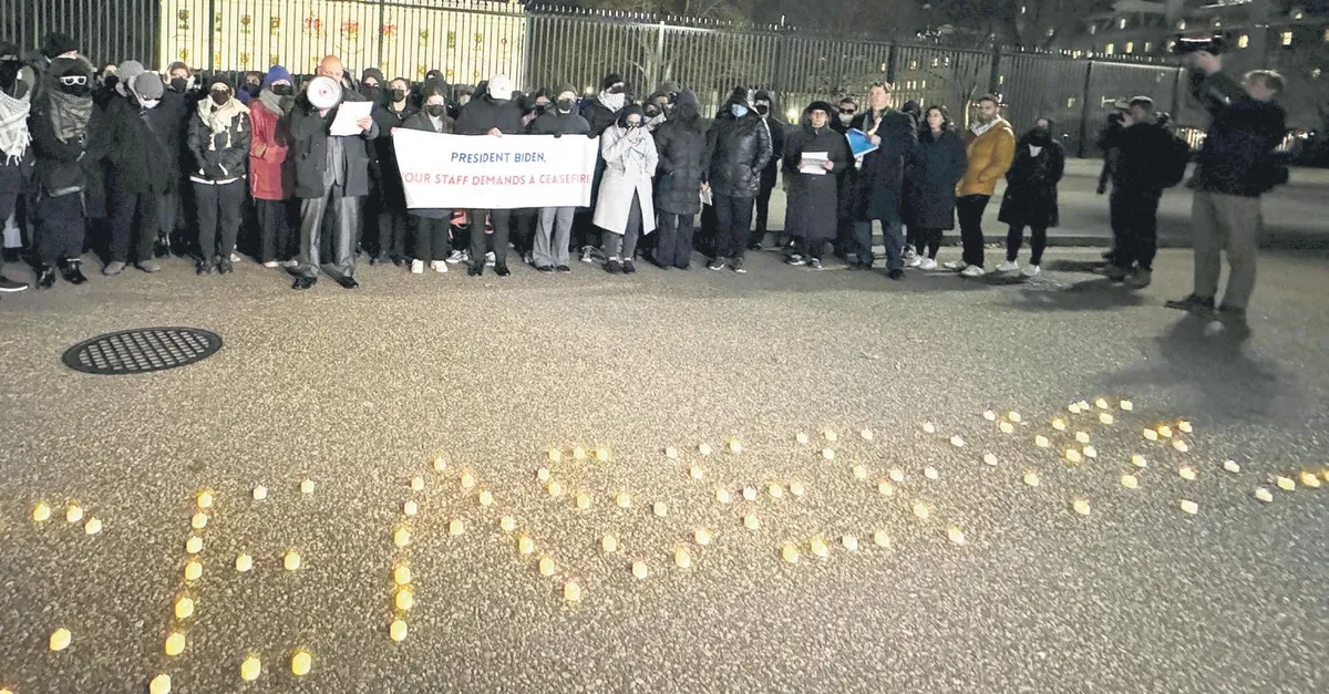 Gazze'deki barbar saldırılarını sürdüren İsrail ve en büyük destekçisi ABD iyice köşeye sıkıştı. İçeriden ve dışarıdan yükselen eleştiriler karşısında Amerikan yönetiminin "Endişeliyiz" veya "Sivil kayıplardan üzüntü duyuyoruz" şeklindeki klasik oyalama politikası artık iflas etmiş durumda. Amerikan kamuoyu ile akademi dünyasından sonra kartel medyası, Kongre'deki stajyerler ve dışişleri çalışanlarından oluşan soykırım karşıtı kesime son olarak Beyaz Saray çalışanları da katıldı. Beyaz saray önünde gösteri yapan memurlar acil ateşkes çağrısında bulundu.