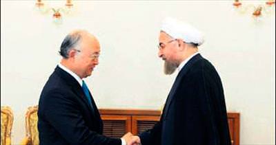 Viyana merkezli Uluslararası Atom Enerjisi Ajansı (UAEA) Genel Direktörü Yukiya Amano, dün İran'ın başkenti Tahran'a gitti. İran ile UAEA arasında imzalanan işbirliği protokolü kapsamındaki diyaloğun devamı niteliğinde değerlendirilen ziyarette, Amano ilk olarak Dışişleri Bakanı Muhammed Cevad Zarif ile görüştü. Amano, İran Atom Enerjisi Ajansı Başkanı Ali Ekber Salihi ile de görüştükten sonra, Cumhurbaşkanı Hasan Ruhani tarafından kabul edildi.