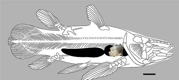Portsmouth Üniversitesi'nde paleontolog olan David Martill'in, özel bir koleksiyoncu tarafından satın alınan ve bir 'uçan yırtıcı sürüngenin kafatası' parçası olduğu düşünülen büyük bir kemiği tanımlaması istendi. Martill kemiğin büyük bir balığa ait olduğunu belirledi. Martill yaptığı açıklamada, "Sadece bir hayvan böyle bir yapıya sahiptir ve bu bir Coelacanth'tır. Bu olağanüstü ve tuhaf görünümlü balığın ciğerinin bulunduğu kemik kafesinin bir parçasını bulduk" dedi.