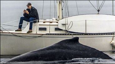 ABD'nin Kaliforniya kıyılarında teknesiyle seyahat eden bir adam; cep telefonuyla oynarken teknenin önünden geçen balinayı fark etmedi. O anı görüntüleyen fotoğrafçı Eric Smith, teknenin hemen yanından balina geçmesine rağmen adamın telefonuyla oynamaya devam ettiğini görünce hayretler içinde kaldı. ABC televizyonuna konuşan Smith, "Yanından kocaman bir balina geçmesine rağmen adam oturmaya devam etti. Gerçekten çok şaşırdım. Sanırım böyle giderse ölürken de telefonumuzla gömüleceğiz" dedi.