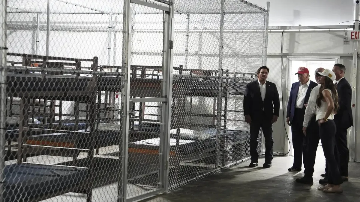 ABD Başkanı Donald Trump, "Timsah Alcatraz" olarak adlandırılan Florida'daki düzensiz göçmenler için yapılan 5 bin yataklı yeni hapishaneyi ziyaret ederek incelemelerde bulundu.